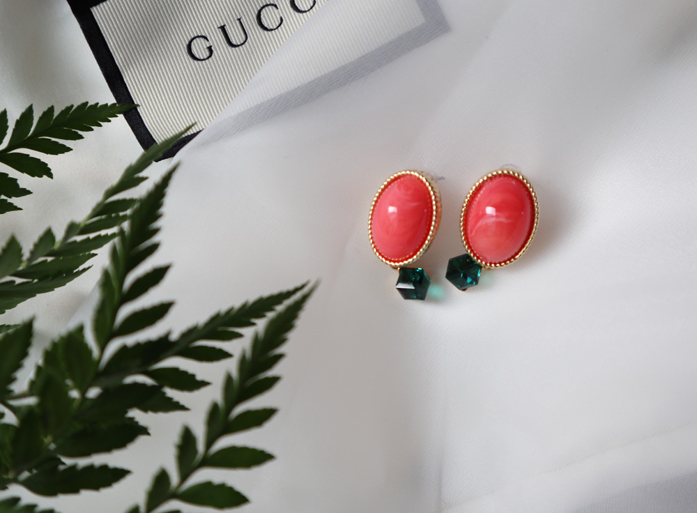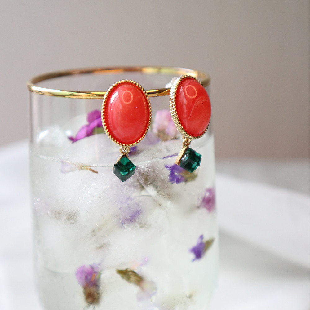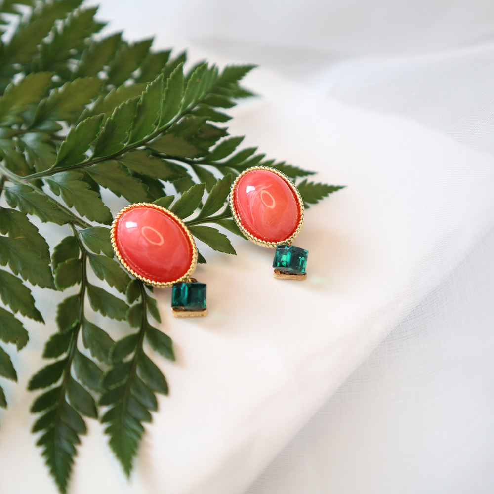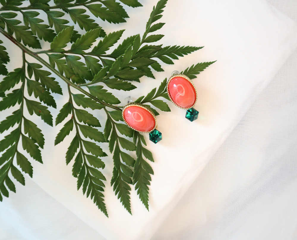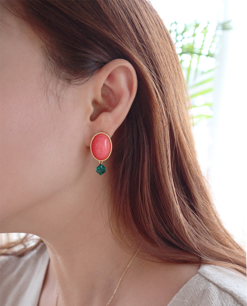 마호가니핑크와 끝에 달린 그린칼라의 크리스탈이